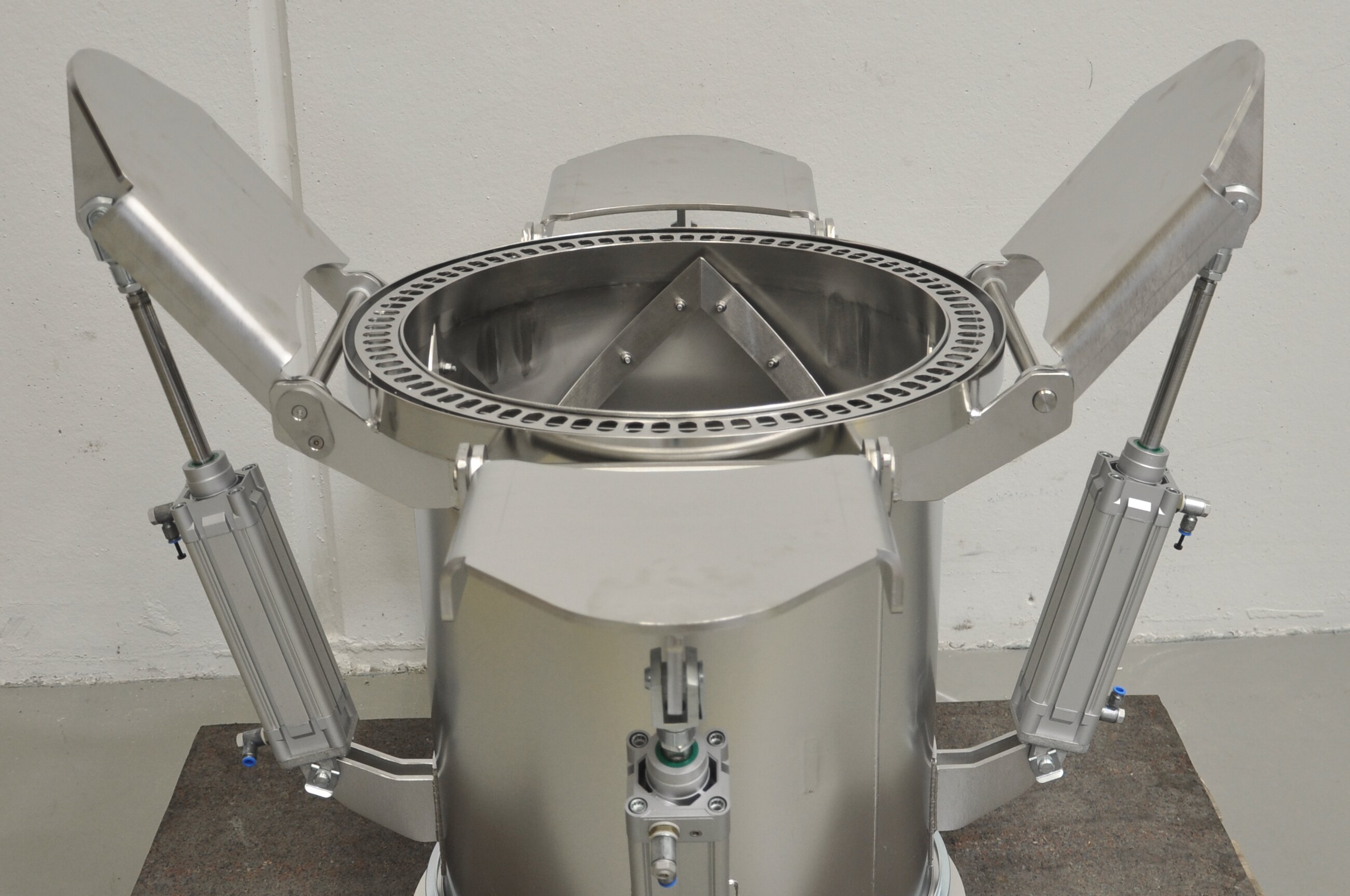 在真空通道的下侧,有一个用于真空发生器的连接口。一旦大袋位于间隔格栅上,真空发生器就会形成真空,从而在大袋下侧与对接系统之间建立临时性的无尘连接。