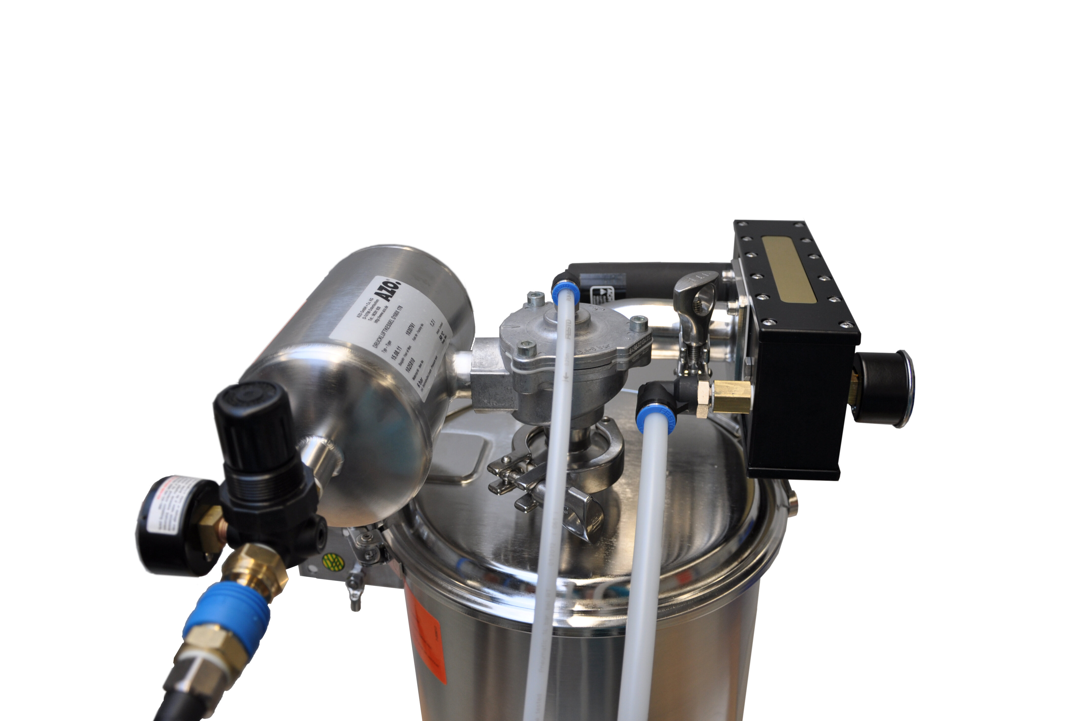过滤器带压缩空气清洁功能。出口法兰适配相应的闸门,包括输送接口和纯净空气接口,带电子控制系统或 PLC 连接控制系统。通过螺栓固定在客户方的机器料斗上。接触产品的部件采用不锈钢制成,表面经过轧光,焊缝经过打磨。